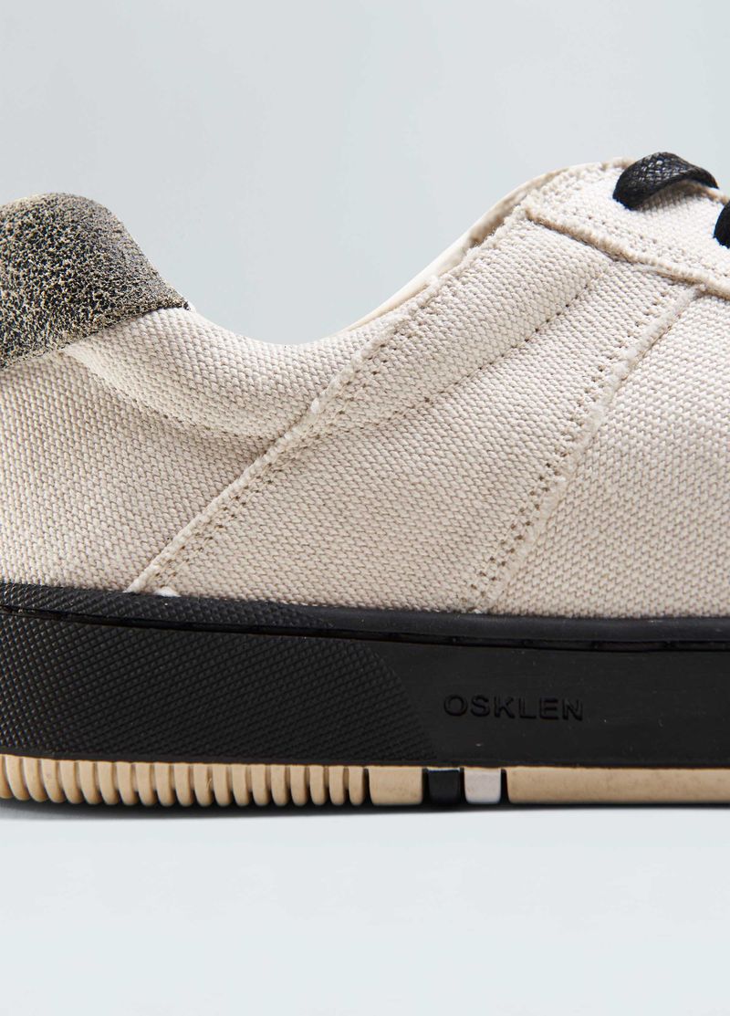 Soho sneakers in 100% cotton canvas with leather detail on the back. Lace-up design featuring cotton laces. 100% cotton twill lining and leather insole. Rubber sole stitched to the upper with exclusiv